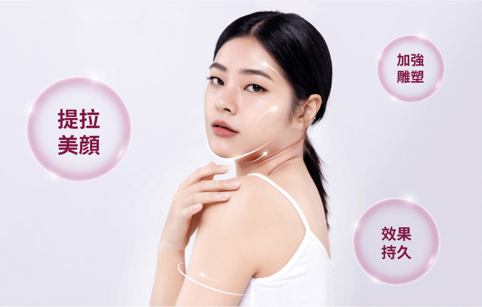 讓您在治療後即可感受到快速又即時的提拉美顏效果,同時刺激了肌膚的膠原蛋白生成,保證術後持續很長的效果,不用頻繁施術。